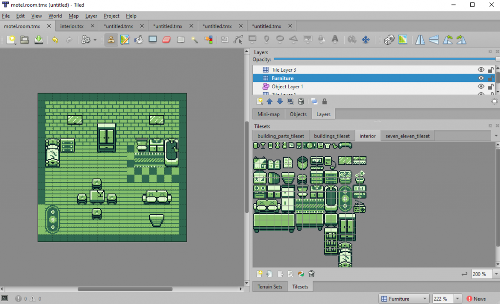 It looks so easy, but then when you’re doing it yourself? For instance, my first map is the interior of a motel room where the character wakes up – before I “knew what I was doing” I had placed the assets down with the bright green screen behind them still, which resulted in some interesting errors…