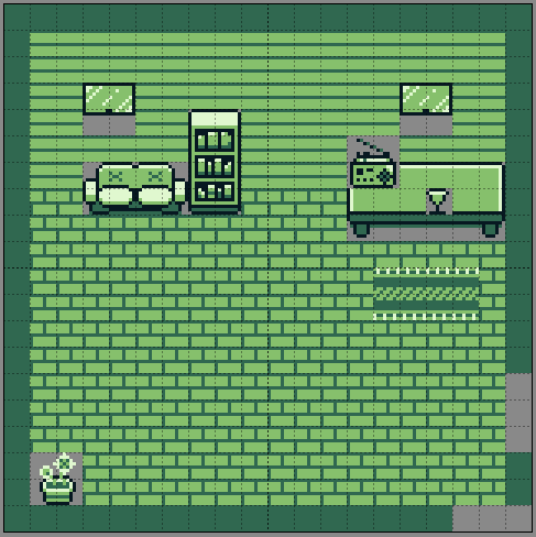 - Retooled the scene maps so that the floor/wall textures were on the bottom layer, the decorations were on a second or third layer, and removed the bright green layer from the assets to ensure smooth transparency!