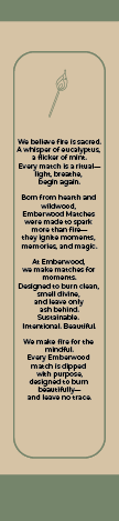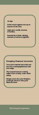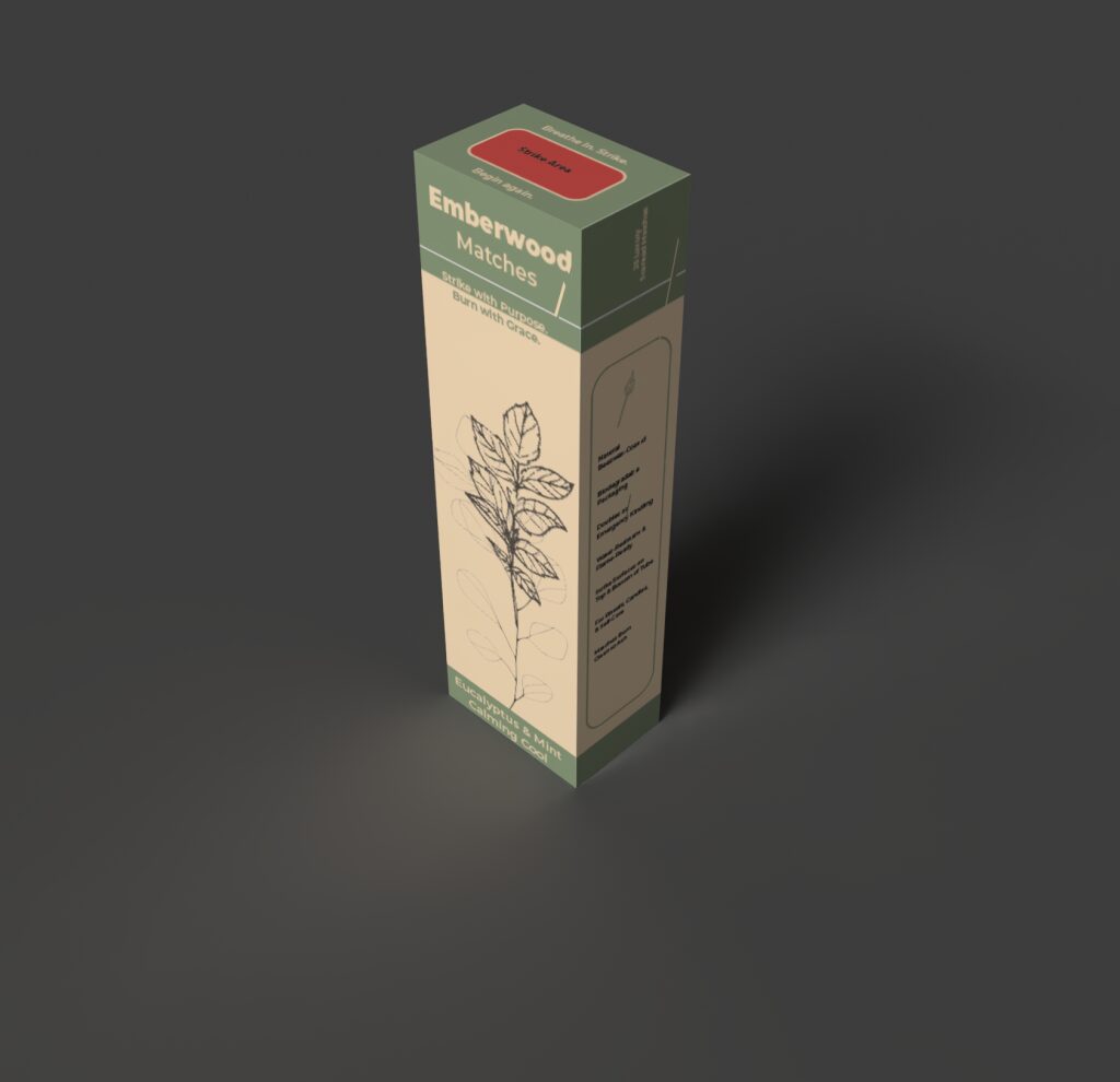 These panels were a lot of fun to work with, I even added in a top and bottom panel to serve as strike areas for the matches. I enjoyed brainstorming the brand name, too, and I picked Emberwood because it speaks to me of fire and wild growing things, which is very brand appropriate for these matches.